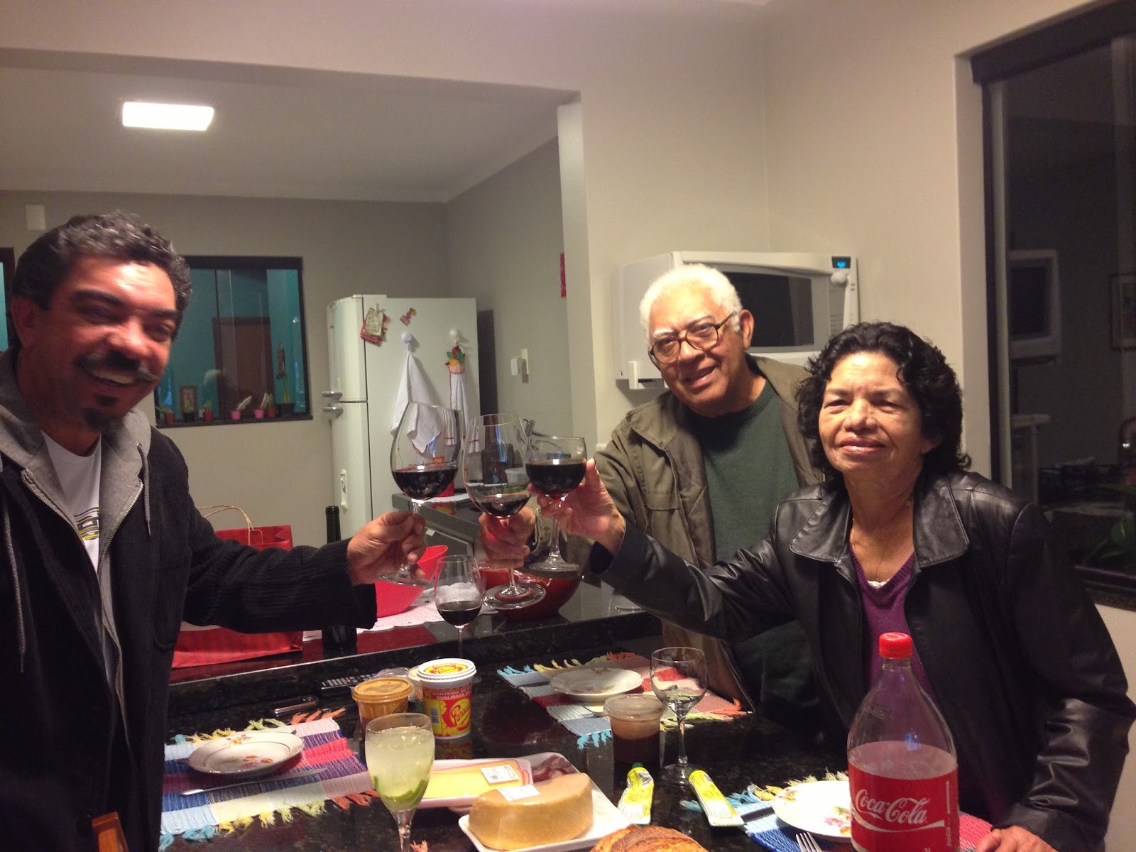 Quando o meu dia de trabalho terminou, meu pai e minha mãe brindaram.